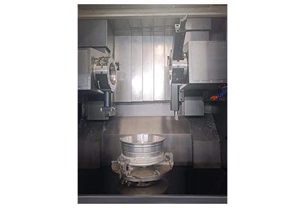 VW24T數(shù)控立式雙刀架車床是針對汽車輪轂加工開發(fā)的一款數(shù)控機(jī)床。擁有單主軸雙刀架,由雙通道數(shù)控系統(tǒng)控制,兩個六工位伺服刀架可各自獨(dú)立對刀和進(jìn)給,兩個刀架可同時對輪轂進(jìn)行內(nèi)外圈加工,應(yīng)用靈活,通用性強(qiáng);一套控制控制兩套進(jìn)給,加工效率高,占地面積小。