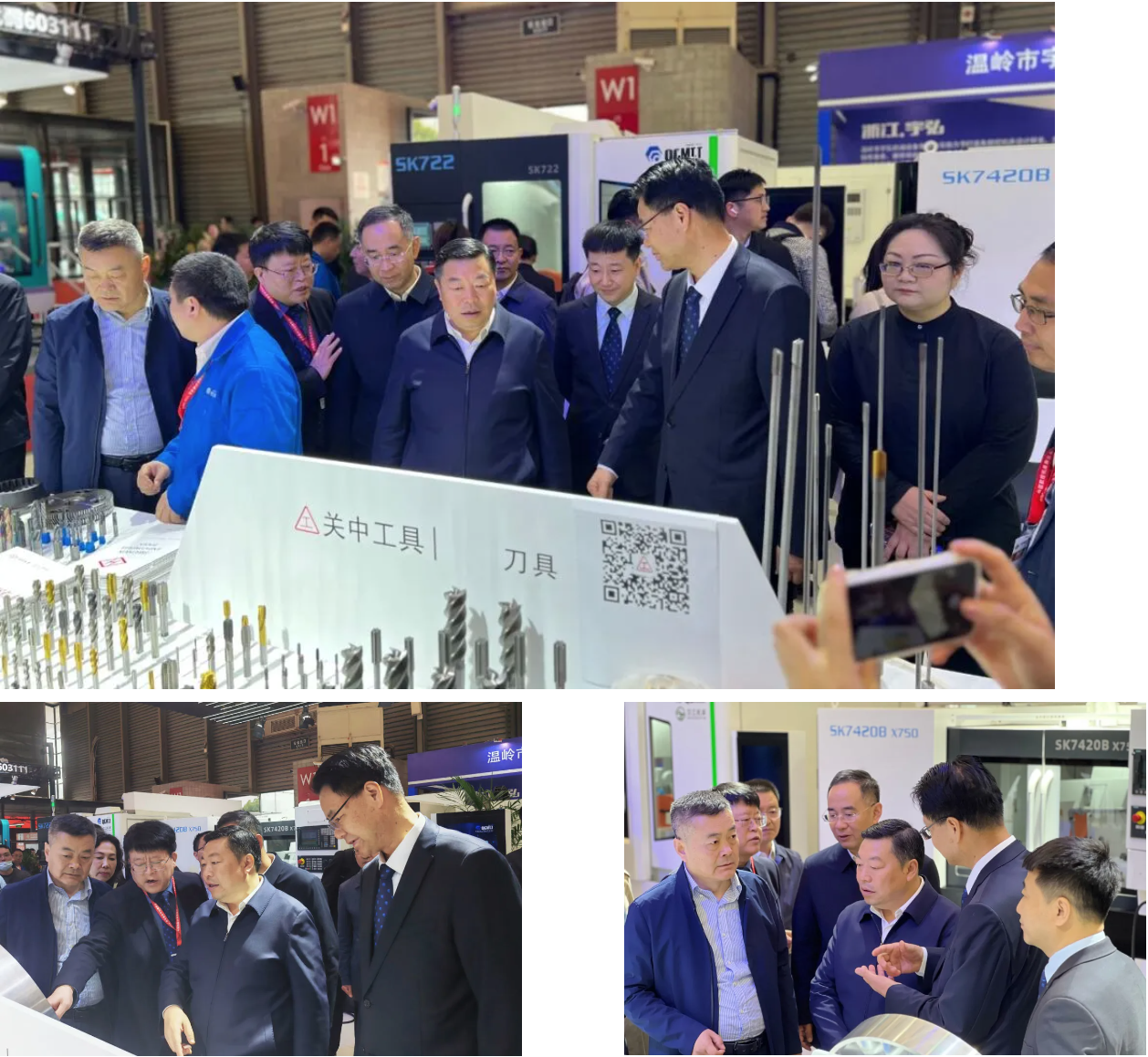 寶雞市政協(xié)主席劉其智、副主席張德科、明濤等領(lǐng)導(dǎo)蒞臨公司展位。秦川集團(tuán)李強(qiáng)總裁、寶雞機(jī)床集團(tuán)李清耀董事長(zhǎng)重點(diǎn)介紹了現(xiàn)場(chǎng)展機(jī)以及公司在科技創(chuàng)新、產(chǎn)品研發(fā)、重點(diǎn)領(lǐng)域應(yīng)用案例等方面情況。